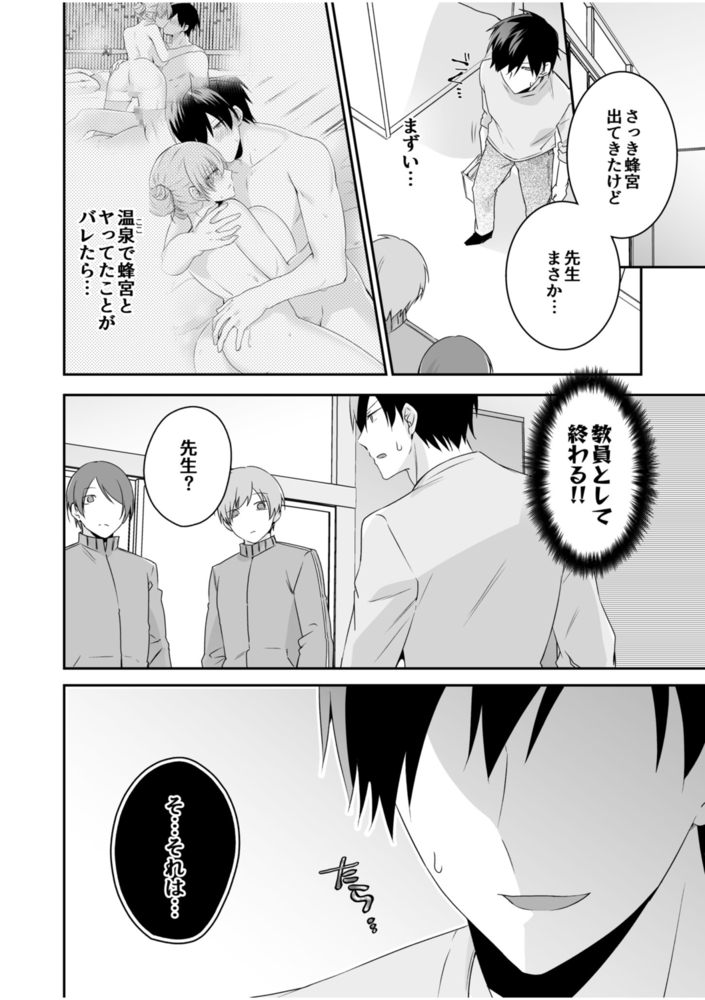 修学旅行先の旅館の温泉でSEXをしてしまった本郷。部屋に戻ったと思ったらまた蜂宮が現れる。なんで部屋まで押しかけて…、そんな本郷に蜂宮は、「だってせっかくの修学旅行だよ?思い出作りたくない??」